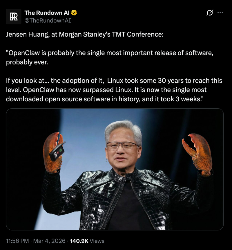 OpenClaw might be the most powerful piece of software released after ChatGPT. It signals that the agentic layer is real and it's here today.